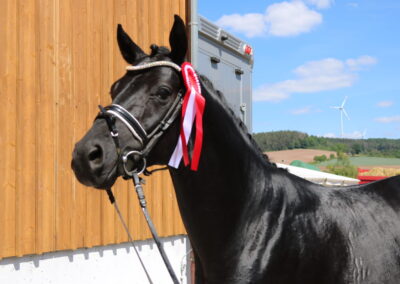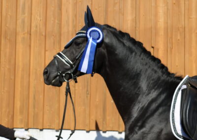Der lackschwarze Wallach Bessito ist ein freundlicher und unkomplizierter Wallach im Alltag.