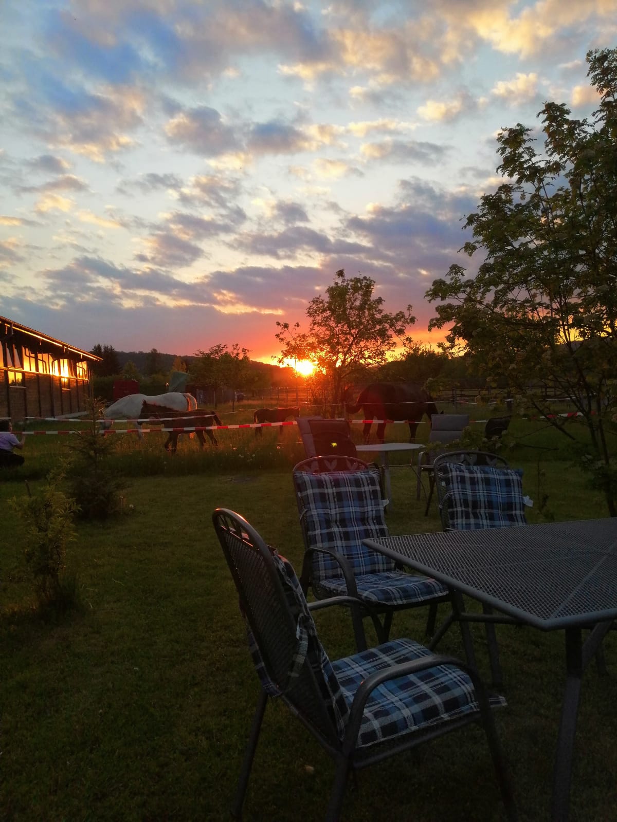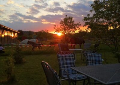 Neben Getränken und qualitativ hochwertigen Speisen zu moderaten Preisen, können Sie im Sommer abseits vom Straßenlärm den wunderbaren Ausblick auf die Burgruine Wartenberg genießen oder Sie schauen den Reitern beim Training in der Halle oder auf dem Platz zu. Die Kleinen können sich in dieser Zeit mit den Ponys vergnügen.