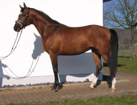 Lucciano de Saale wurde von uns selbst gezogen, stammt von dem bekannten und erfolgreichen Trakehner Hengst Saalekönig und einer Karon Mutter ab.