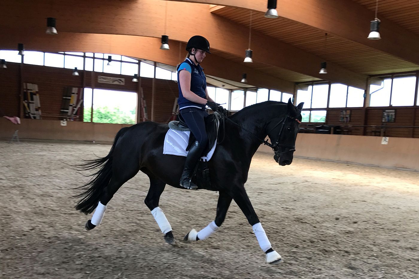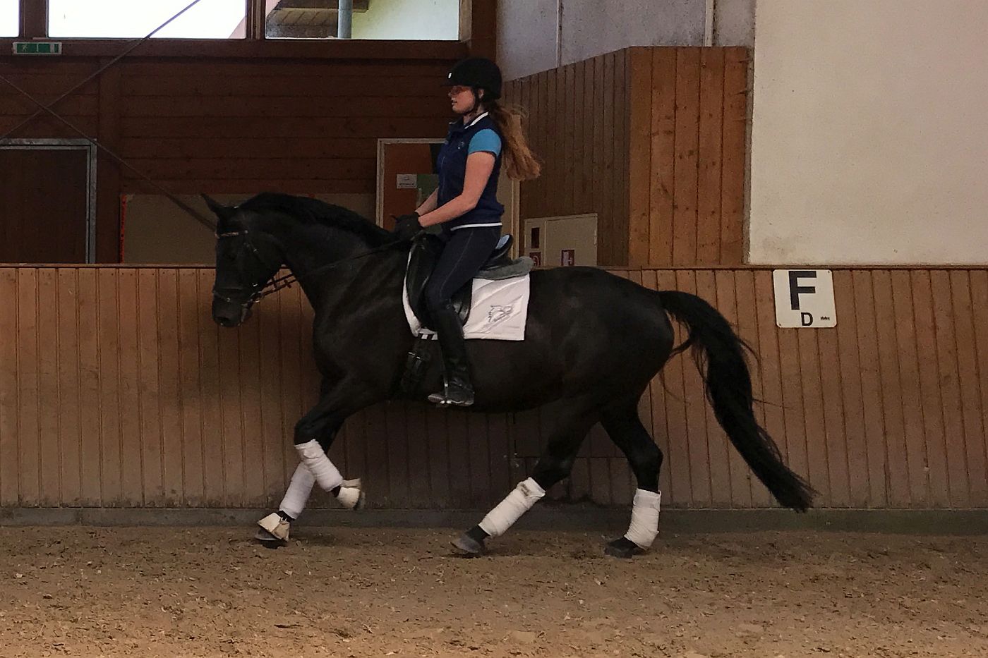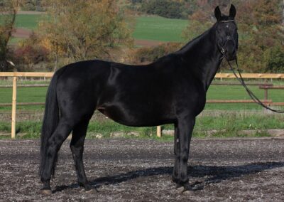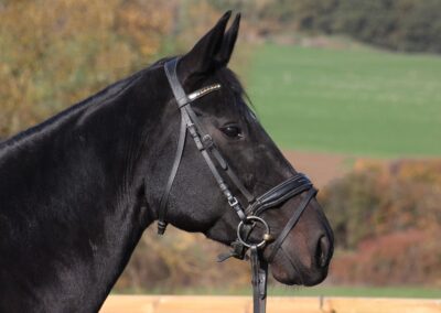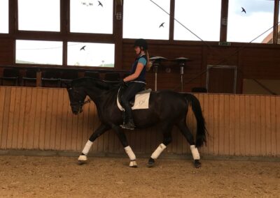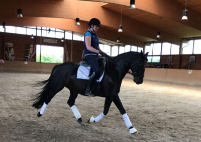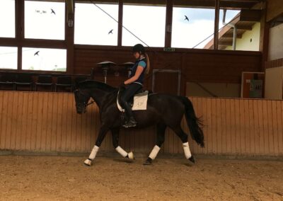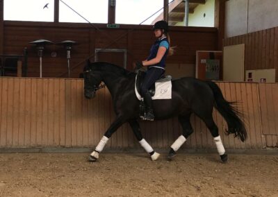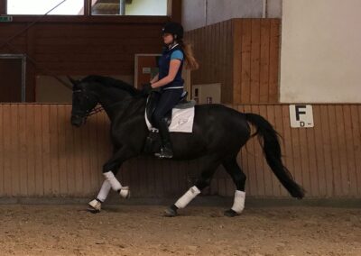 Diese leichtrittige Stute mit drei sehr guten Grundgangarten ist mittlerweile bis zur schweren Klasse dressurmäßig ausgebildet und bringt alles mit, was das Reiterherz begehrt. Leider war Sie am Turnier meist sehr verspannt, weshalb wir Sie wenig vorgestellt haben. Ob für den vorsichtigen Reiter, der gerne anspruchsvolle Lektionen reiten möchte, oder den anspruchsvollen Freizeit-Reiter im Gelände - Ruby Dawn ist die perfekte Partnerin. Im Umgang und beim Reiten ist sie immer klar im Kopf, vertrauensvoll und unkompliziert händelbar. Zudem ist sie schmiede- und verladefromm. Lassen Sie sich von Ruby Dawns Talent und Charakter überzeugen.