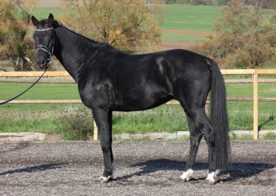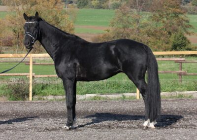 The Real Mojito, liebevoll Mojito genannt, ist einer unserer hoffnungsvollsten Nachwuchspferde. Lackschwarz mit vier weißen Beinen ausgestattet ist er ein echter Hingucker. Fünf Jährig schon hocherfolgreich unterwegs lässt er in Zukunft auf großes hoffen.